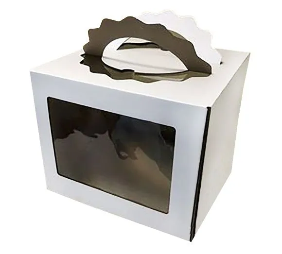 Коробка для торта. Белая коробка для торта надежно защитит десерт от воздействия влаги и воздуха. Кондитерское изделие под картонной крышкой не высохнет и не испачкается. Коробка для тортов с окном для демонстрации продукции. Плотно и надежно закрывается, тем самым сохраняя аккуратный внешний вид торта и позволяя транспортировать готовое изделие без повреждений. Такая упаковка позволит в целости и сохранности доставить десерты в магазины или донести от кондитерской до дома. Удобные ручки упрощают переноску. Прочная картонная коробка надежно защитит торт от деформации, контакта с пылью и влагой, неприятных запахов во время транспортировки и хранения.