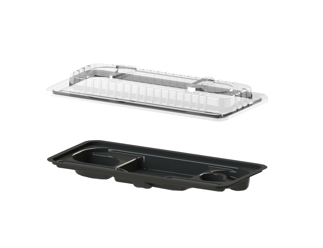 Контейнер  предназначен для фасовки суши, роллов, восточных сладостей, готовой кулинарии. Размер 275х121х43 мм