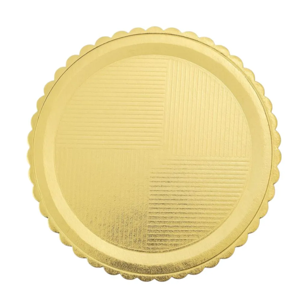 Поднос картонный круглый золотого цвета для тортов и пирожных. Диаметр 42 см. Толщина 3 мм.