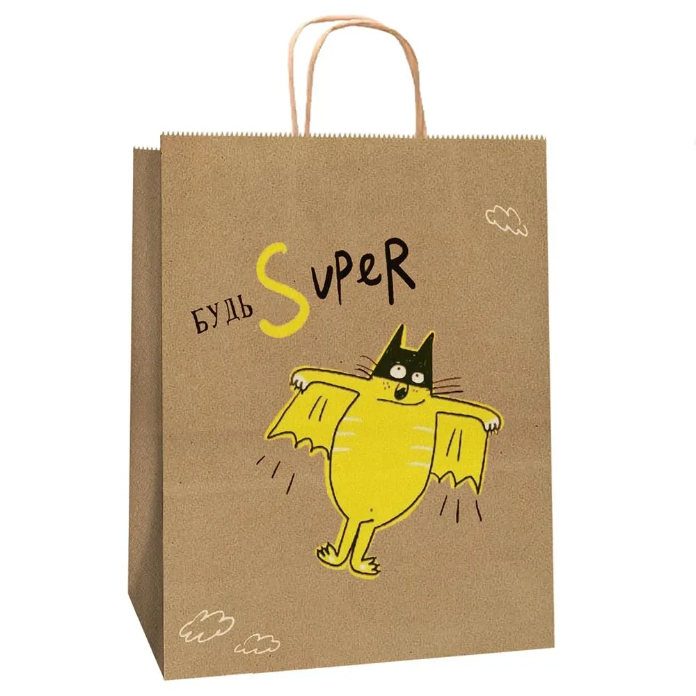 сумка бум. крафт 35х26х15 с круч. ручками Будь супер *